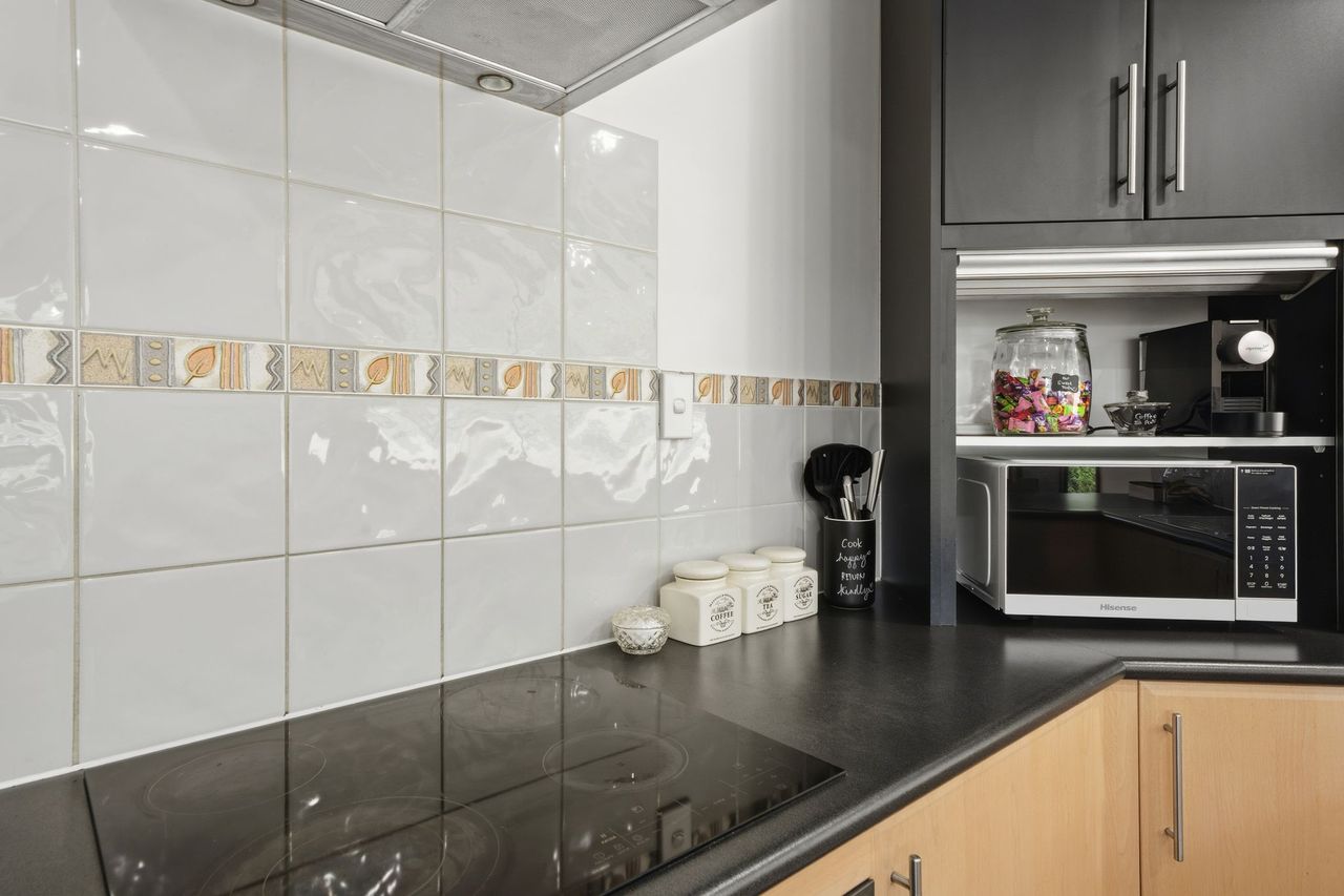 ✓ Full-size appliances including oven, cooktop, fridge, and microwave