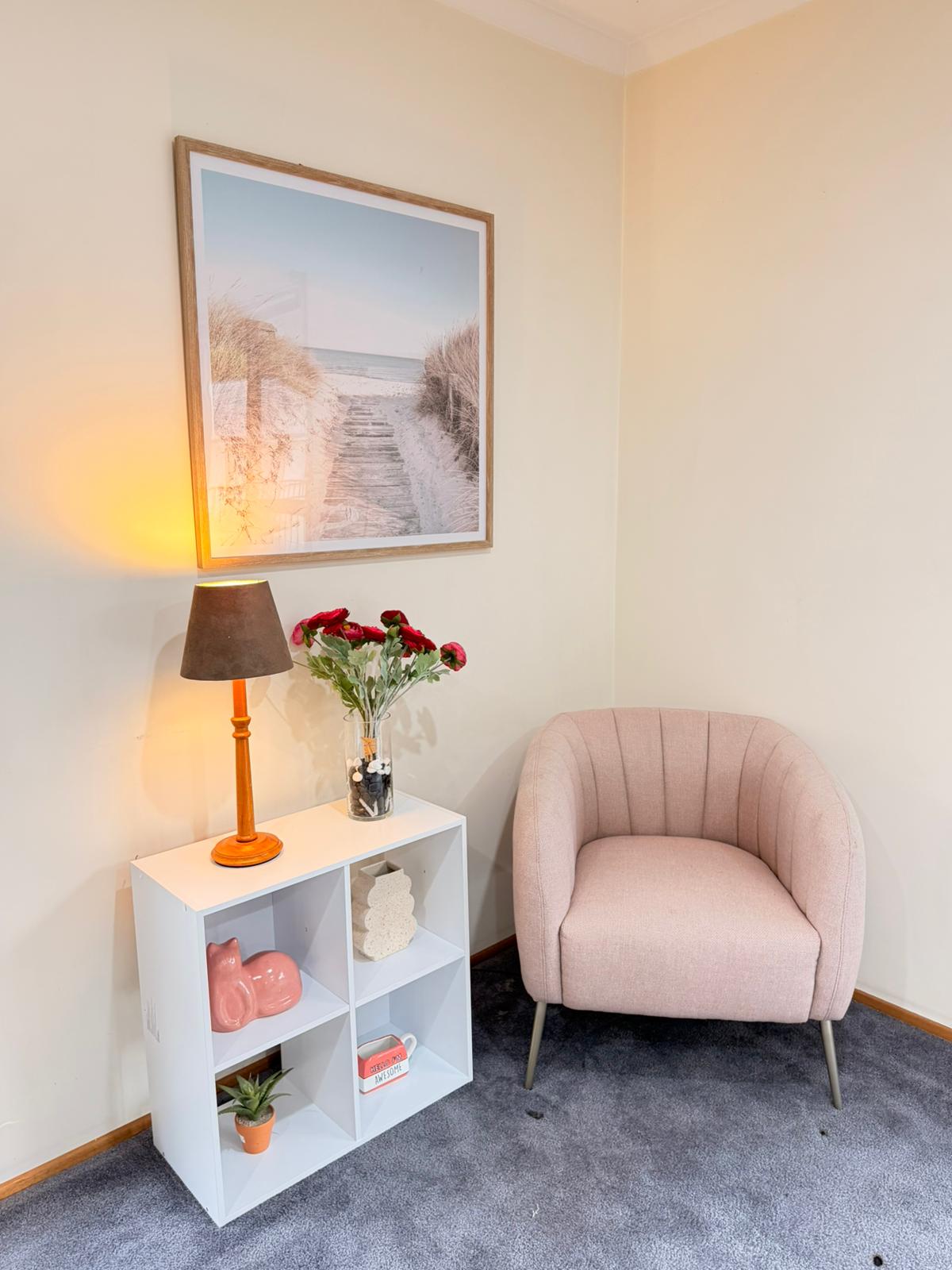 Open and inviting living room with cosy seating and natural light.